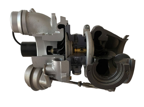 Gazele de eșapament produse în timpul arderii antrenează o turbină care este conectată la rotorul compresorului prin intermediul unui arbore. Rotorul de la cele mai noi și mai compacte turbocompresoare, care se rotește la turații de până la 400.000 de rotații pe minut, comprimă aerul aspirat și, astfel, alimentează motorul cu o cantitate mai mare de aer. Astfel, emisiile de CO2 și consumul de combustibil se pot reduce la minimum, în timp ce crește performanța.