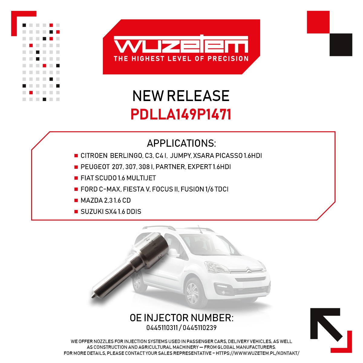 Noul injector PDLLA149P1471 este conceput pentru o gamă largă de vehicule PSA, Ford, Fiat și Suzuki echipate cu motorul 1.6 HDi / TDCi / Multijet.