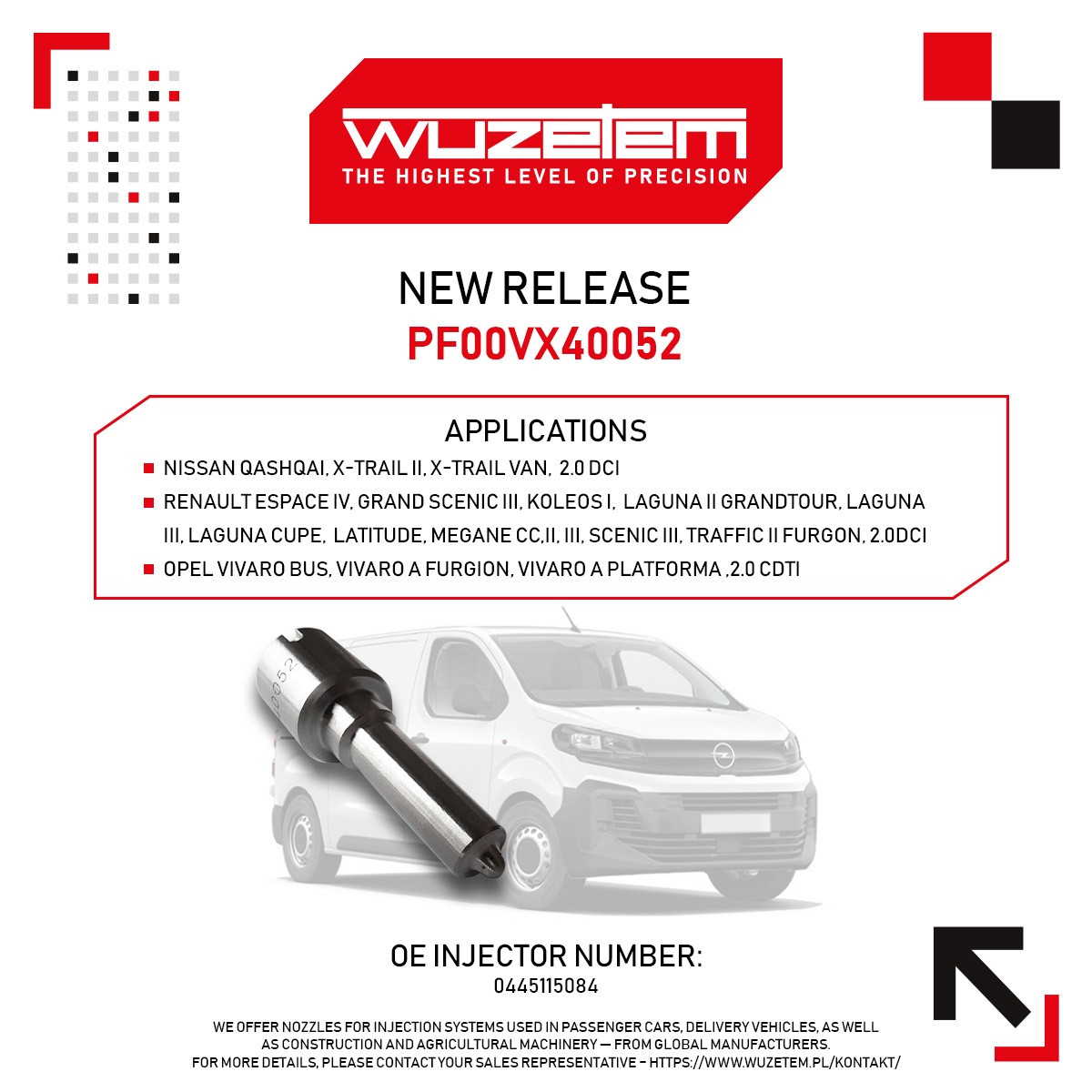 Noul injector PF00VX40052 este conceput pentru popularele unități 2.0 dCi utilizate de Nissan, Renault și Opel.