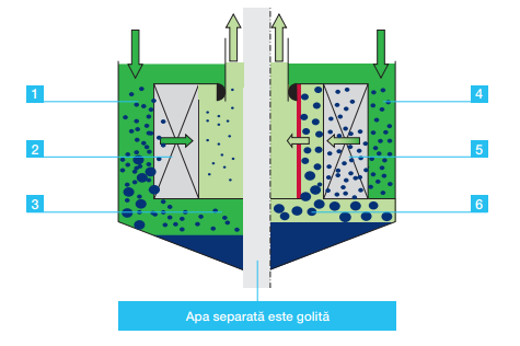 - Impuritățile și apa sunt separate într-o singură treaptă